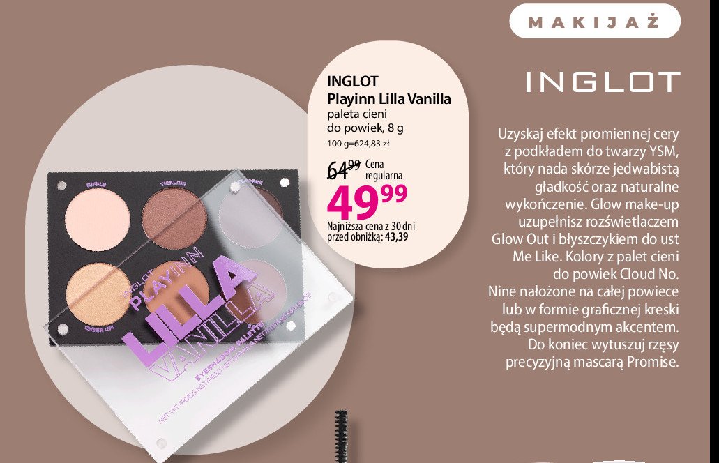 Przegl膮daj podobne oferty promocyjne do Paleta cieni do powiek lilla vanilla INGLOT PLAYINN!