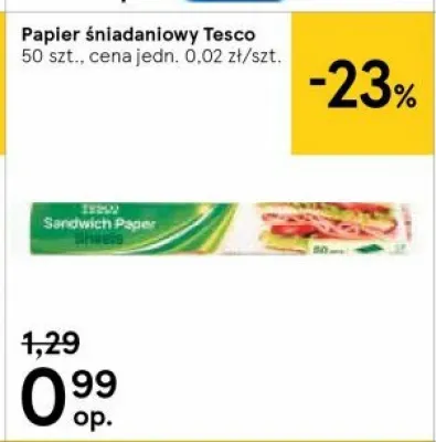Ile kosztuje Papier 艣niadaniowy w arkuszach 29.5 cm x 23 cm Tesco mw?