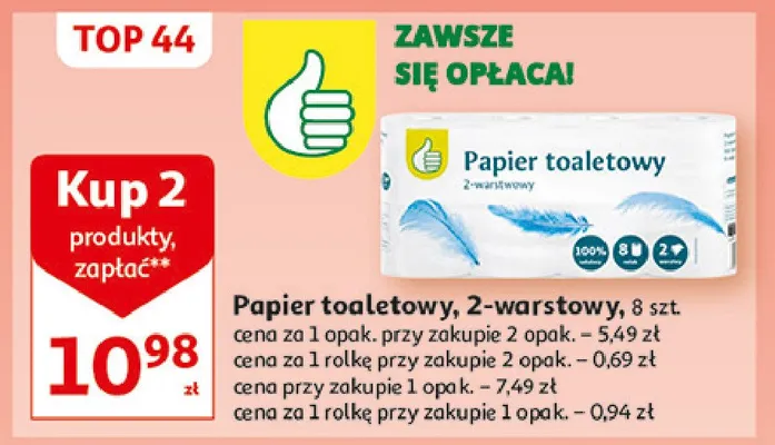 Przegl膮daj oferty promocyjne na produkt Papier toaletowy bia艂y Podniesiony kciuk