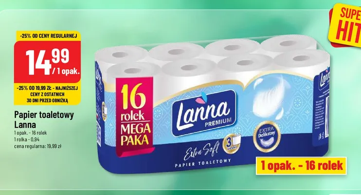Ile kosztuje Papier toaletowy extra soft Lanna premium?