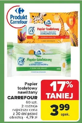 Papier toaletowy nawil偶any rumianek Carrefour promocje w sklepach - znajd藕 ofert臋 dla siebie!