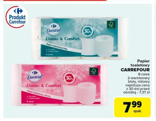 Papier toaletowy r贸偶owy Carrefour essential promocje w sklepach - znajd藕 ofert臋 dla siebie!