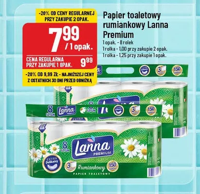 Papier toaletowy rumiankowy 3-warstwowy Lanna premium promocje w sklepach - znajd藕 ofert臋 dla siebie!