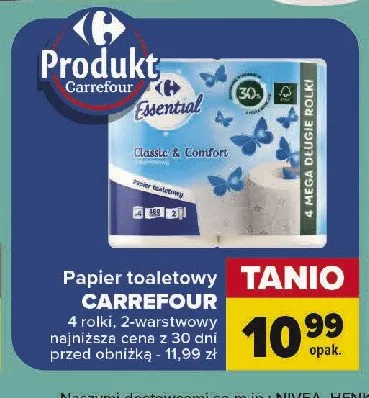 Ile kosztuje Papier toaletowy rumiankowy classic & comfort Carrefour essential?