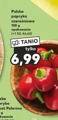 Zastanawiasz si臋, gdzie kupi膰 i ile kosztuje produkt Papryka czere艣niowa? Regularnie sprawdzamy, czy jest promocja na ten produkt w Biedronka, Lidl, Kaufland, Auchan, Netto, Makro i innych sklepach. Aktualnie posiadamy 4 oferty promocyjne na ten produkt. Ceny zaczynaj膮 si臋 od 18,99z艂!