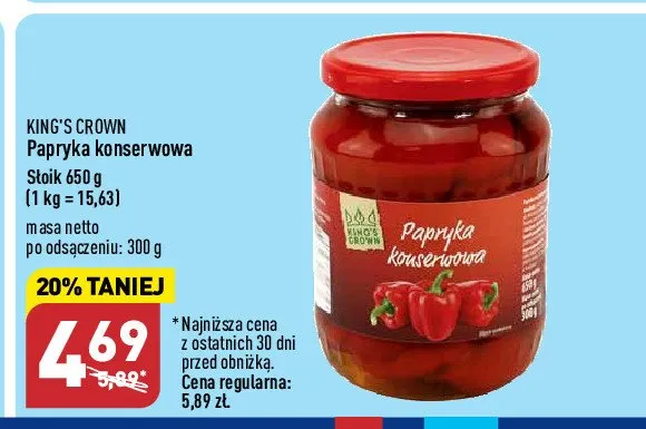 Ile kosztuje Papryka konserwowa King's crown (aldi)?