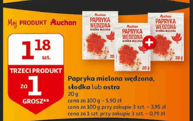 Ile kosztuje Papryka w臋dzona ostra Auchan r贸偶norodne (logo czerwone)?