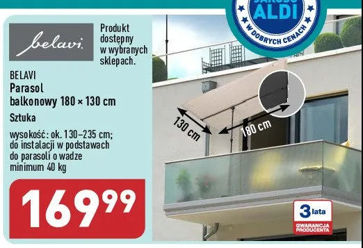 Zastanawiasz si臋, gdzie kupi膰 i ile kosztuje produkt Parasol balkonowy 180 x 130 cm BELAVI? Regularnie sprawdzamy, czy jest promocja na ten produkt w Biedronka, Lidl, Kaufland, Auchan, Netto, Makro i innych sklepach. Aktualnie nie posiadamy ofert promocyjnych na ten produkt.