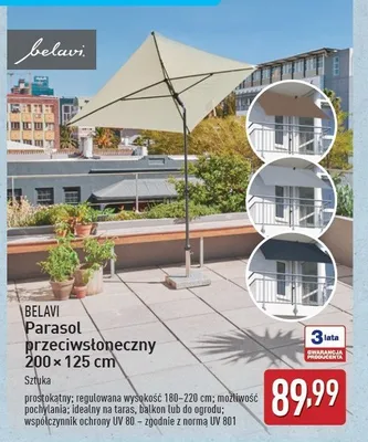 Cena produktu r贸偶ni si臋 w zale偶no艣ci od wybranego sklepu. Produkt Parasol przeciws艂oneczny 200 x 125 cm mo偶esz kupi膰 w promocji ju偶 od 79,99 z艂. Najta艅sza oferta, jak膮 mamy w naszej bazie jest z sieci Aldi. Parasol przeciws艂oneczny 200 x 125 cm kosztuje aktualnie 79,99 z艂. Zobacz ofert臋