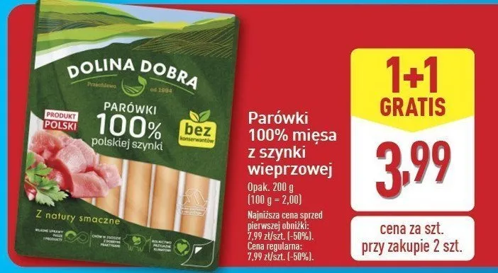 Przegl膮daj oferty promocyjne na produkt Par贸wki 100 % z szynki Dolina dobra
