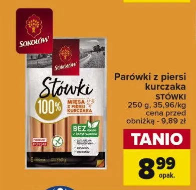 Parówki stówki z piersi kurczaka Sokołów promocje w sklepach - znajdź ofertę dla siebie!