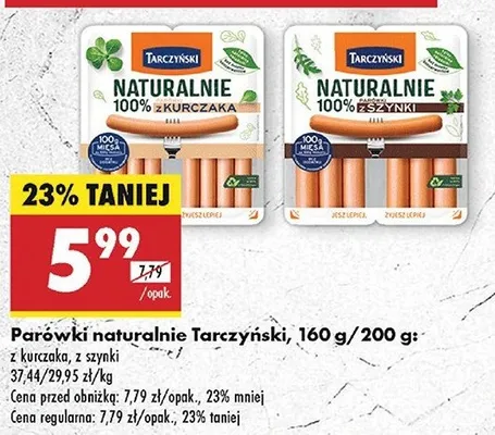 Zastanawiasz si臋, gdzie kupi膰 i ile kosztuje produkt Par贸wki z kurczaka Tarczy艅ski? Regularnie sprawdzamy, czy jest promocja na ten produkt w Biedronka, Lidl, Kaufland, Auchan, Netto, Makro i innych sklepach. Aktualnie posiadamy 3 oferty promocyjne na ten produkt. Ceny zaczynaj膮 si臋 od 4,99z艂!