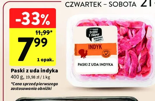 Gdzie mo偶na tanio kupi膰 produkt Paski z fileta z indyka Intermarche dobre z farmy?