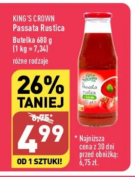 Cena produktu r贸偶ni si臋 w zale偶no艣ci od wybranego sklepu. Niestety nie posiadamy danych o aktualnych promocjach, jednak w艣r贸d archiwalnych ofert Passata rustica Kings crown kosztuje od 4,89 z艂 do 5,59 z艂.