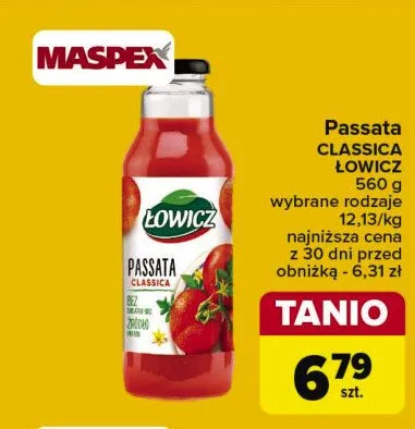 Cena produktu r贸偶ni si臋 w zale偶no艣ci od wybranego sklepu. Niestety nie posiadamy danych o aktualnych promocjach, jednak w艣r贸d archiwalnych ofert Passata rustica 艁owicz kosztuje od 5,7 z艂 do 6,79 z艂.