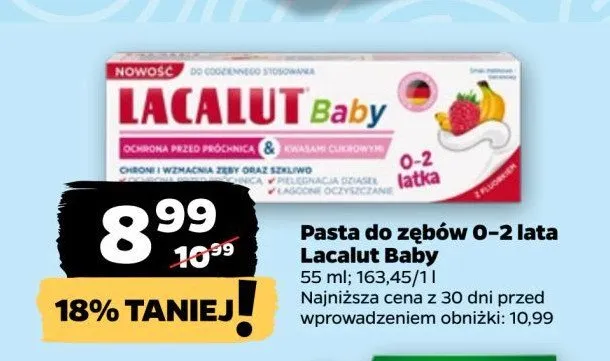 Zastanawiasz si臋, gdzie kupi膰 i ile kosztuje produkt Pasta do z臋b贸w 0-2 Lacalut baby? Regularnie sprawdzamy, czy jest promocja na ten produkt w Biedronka, Lidl, Kaufland, Auchan, Netto, Makro i innych sklepach. Aktualnie posiadamy 3 oferty promocyjne na ten produkt. Ceny zaczynaj膮 si臋 od 6,99z艂!