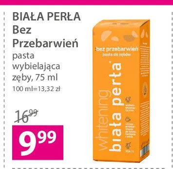 Cena produktu różni się w zależności od wybranego sklepu. Niestety nie posiadamy danych o aktualnych promocjach, jednak wśród archiwalnych ofert Pasta do zębów bez przebarwień Biała perła kosztuje od 7,99 zł do 15,99 zł.