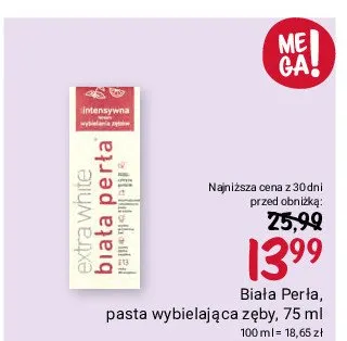 Cena produktu różni się w zależności od wybranego sklepu. Niestety nie posiadamy danych o aktualnych promocjach, jednak wśród archiwalnych ofert Pasta do zębów intensywna terapia Biała perła kosztuje od 9,88 zł do 19,99 zł.