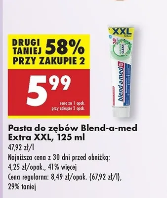 Zastanawiasz si臋, gdzie kupi膰 i ile kosztuje produkt Pasta do z臋b贸w krauter clean Blend-a-med? Regularnie sprawdzamy, czy jest promocja na ten produkt w Biedronka, Lidl, Kaufland, Auchan, Netto, Makro i innych sklepach. Aktualnie posiadamy 2 oferty promocyjne na ten produkt. Ceny zaczynaj膮 si臋 od 11,99z艂!