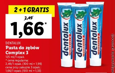 Cena produktu różni się w zależności od wybranego sklepu. Niestety nie posiadamy danych o aktualnych promocjach, jednak wśród archiwalnych ofert Pasta do zębów miętowa świeżość Dentalux kosztuje od 1,66 zł.