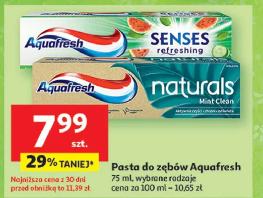 Ile kosztuje Pasta do z臋b贸w mint cleant Aquafresh naturals?