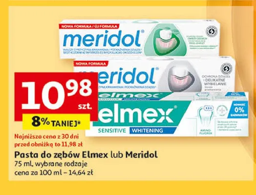 Cena produktu różni się w zależności od wybranego sklepu. Niestety nie posiadamy danych o aktualnych promocjach, jednak wśród archiwalnych ofert Pasta do zębów pewność oddechu Meridol kosztuje od 10,98 zł do 11,99 zł.