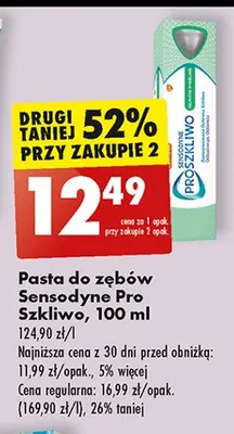 Cena produktu r贸偶ni si臋 w zale偶no艣ci od wybranego sklepu. Niestety nie posiadamy danych o aktualnych promocjach, jednak w艣r贸d archiwalnych ofert Pasta do z臋b贸w Sensodyne pro szkliwo wzmacnianie szkliwa kosztuje od 8,49 z艂 do 12,49 z艂.