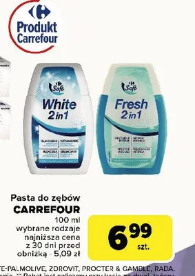 Przegl膮daj oferty promocyjne na produkt Pasta do z臋b贸w white 2w1 Carrefour