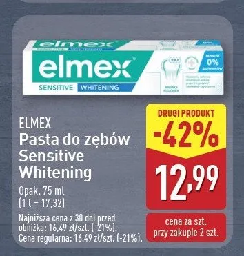 Cena produktu r贸偶ni si臋 w zale偶no艣ci od wybranego sklepu. Niestety nie posiadamy danych o aktualnych promocjach, jednak w艣r贸d archiwalnych ofert Pasta do z臋b贸w whitening Elmex kosztuje od 11,99 z艂 do 16,89 z艂.