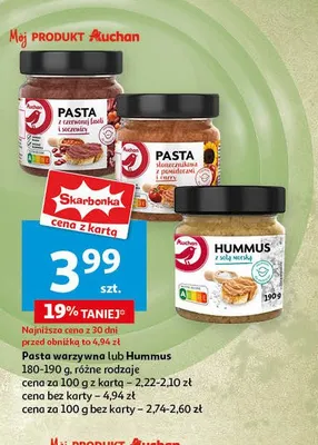 Gdzie mo偶na tanio kupi膰 produkt Pasta s艂onecznikowa z pomidorami i curry Auchan r贸偶norodne (logo czerwone)?