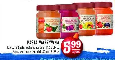 Cena produktu r贸偶ni si臋 w zale偶no艣ci od wybranego sklepu. Niestety nie posiadamy danych o aktualnych promocjach, jednak w艣r贸d archiwalnych ofert Pasta warzywna z nasionami s艂onecznika Podravka kosztuje od 3,79 z艂 do 5,99 z艂.