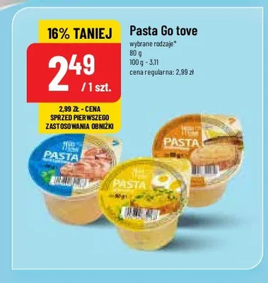 Cena produktu r贸偶ni si臋 w zale偶no艣ci od wybranego sklepu. Niestety nie posiadamy danych o aktualnych promocjach, jednak w艣r贸d archiwalnych ofert Pasta z 艂ososiem Gotove kosztuje od 1,99 z艂 do 2,49 z艂.