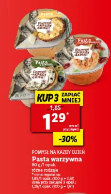 Cena produktu różni się w zależności od wybranego sklepu. Niestety nie posiadamy danych o aktualnych promocjach, jednak wśród archiwalnych ofert Pasta z suszonymi pomidorami Pomysł na każdy dzień! kosztuje od 1,29 zł.