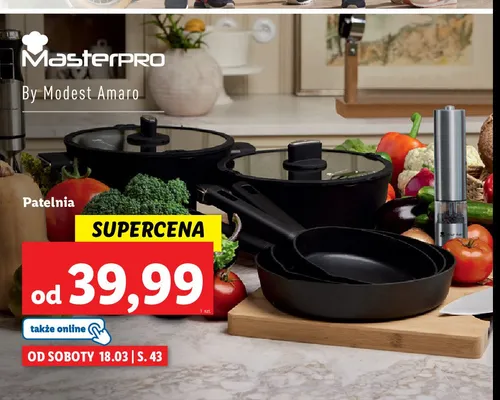 Cena produktu r贸偶ni si臋 w zale偶no艣ci od wybranego sklepu. Niestety nie posiadamy danych o aktualnych promocjach, jednak w艣r贸d archiwalnych ofert Patelnia Masterpro kosztuje od 39,99 z艂.