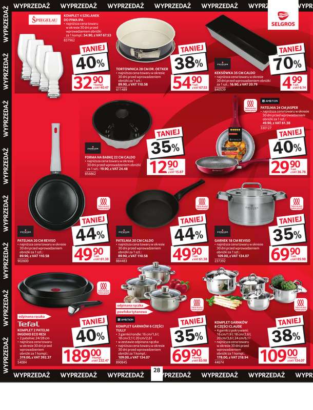 Cena produktu r贸偶ni si臋 w zale偶no艣ci od wybranego sklepu. Produkt Patelnia nature 20 cm Ambition mo偶esz kupi膰 w promocji ju偶 od 29,9 z艂. Najta艅sza oferta, jak膮 mamy w naszej bazie jest z sieci Selgros. Patelnia nature 20 cm Ambition kosztuje aktualnie 29,9 z艂. Zobacz ofert臋