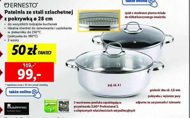 Przegl膮daj podobne oferty promocyjne do Patelnia ze stali szlachetnej 28 cm Ernesto!