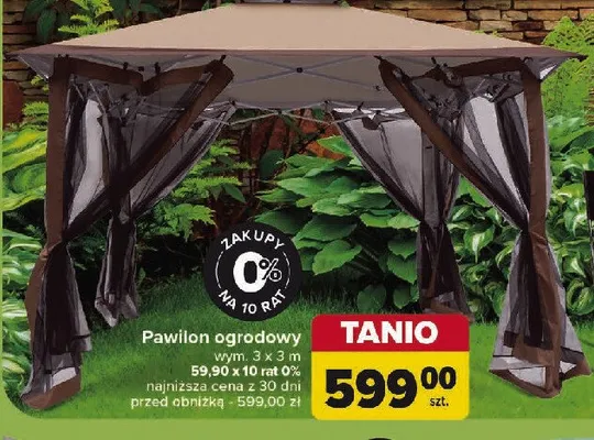 Cena produktu r贸偶ni si臋 w zale偶no艣ci od wybranego sklepu. Produkt Pawilon ogrodowy 3 x 3 m mo偶esz kupi膰 w promocji ju偶 od 149 z艂 do 2597 z艂. Najta艅sza oferta, jak膮 mamy w naszej bazie jest z sieci Carrefour. Pawilon ogrodowy 3 x 3 m kosztuje aktualnie 149 z艂. Zobacz ofert臋