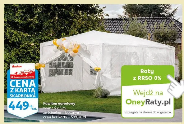 Cena produktu r贸偶ni si臋 w zale偶no艣ci od wybranego sklepu. Produkt Pawilon ogrodowy 6 x 3 m mo偶esz kupi膰 w promocji ju偶 od 149 z艂 do 2597 z艂. Najta艅sza oferta, jak膮 mamy w naszej bazie jest z sieci Carrefour. Pawilon ogrodowy 6 x 3 m kosztuje aktualnie 149 z艂. Zobacz ofert臋