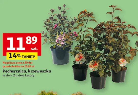 Zastanawiasz si臋, gdzie kupi膰 i ile kosztuje produkt P臋cherznica kalinolistna w doniczce 2 l? Regularnie sprawdzamy, czy jest promocja na ten produkt w Biedronka, Lidl, Kaufland, Auchan, Netto, Makro i innych sklepach. Aktualnie nie posiadamy ofert promocyjnych na ten produkt.