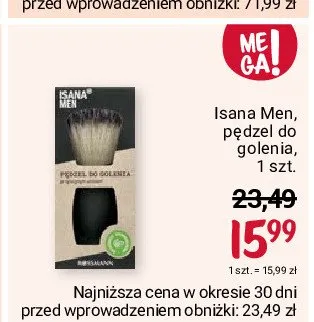 Cena produktu r贸偶ni si臋 w zale偶no艣ci od wybranego sklepu. Niestety nie posiadamy danych o aktualnych promocjach, jednak w艣r贸d archiwalnych ofert P臋dzel do golenia Isana for men kosztuje od 15,99 z艂.