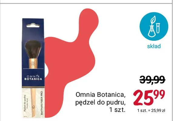 Cena produktu r贸偶ni si臋 w zale偶no艣ci od wybranego sklepu. Niestety nie posiadamy danych o aktualnych promocjach, jednak w艣r贸d archiwalnych ofert P臋dzel do pudru OMNIA BOTANICA kosztuje od 25,99 z艂.