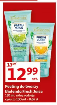 Cena produktu różni się w zależności od wybranego sklepu. Niestety nie posiadamy danych o aktualnych promocjach, jednak wśród archiwalnych ofert Peeling nawilżający z pomarańczą Bielenda fresh juice kosztuje od 10,99 zł do 12,99 zł.
