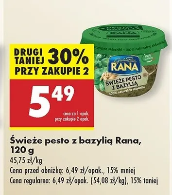 Cena produktu r贸偶ni si臋 w zale偶no艣ci od wybranego sklepu. Niestety nie posiadamy danych o aktualnych promocjach, jednak w艣r贸d archiwalnych ofert Pesto z bazyli膮 Giovanni rana kosztuje od 3,25 z艂 do 6,49 z艂.