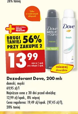 Cena produktu r贸偶ni si臋 w zale偶no艣ci od wybranego sklepu. Niestety nie posiadamy danych o aktualnych promocjach, jednak w艣r贸d archiwalnych ofert Pianka do cia艂a extra fresh Dove men+care kosztuje od 13,99 z艂.
