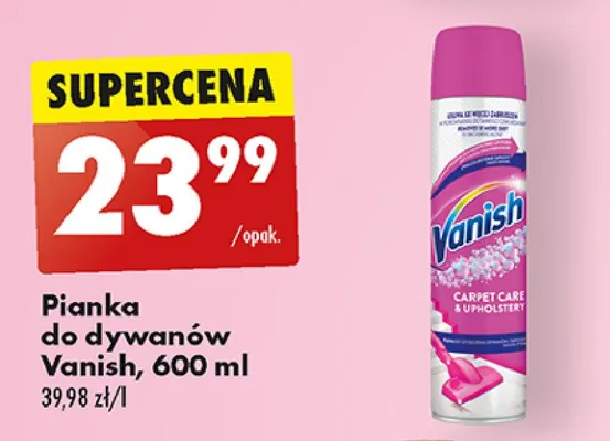 Cena produktu r贸偶ni si臋 w zale偶no艣ci od wybranego sklepu. Produkt Pianka do dywan贸w Vanish oxi action mo偶esz kupi膰 w promocji ju偶 od 29,99 z艂. Najta艅sza oferta, jak膮 mamy w naszej bazie jest z sieci Biedronka. Pianka do dywan贸w Vanish oxi action kosztuje aktualnie 29,99 z艂. Zobacz ofert臋