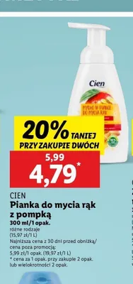 Cena produktu r贸偶ni si臋 w zale偶no艣ci od wybranego sklepu. Niestety nie posiadamy danych o aktualnych promocjach, jednak w艣r贸d archiwalnych ofert Pianka do mycia r膮k soczyste mango Cien kosztuje od 2,99 z艂 do 4,79 z艂.