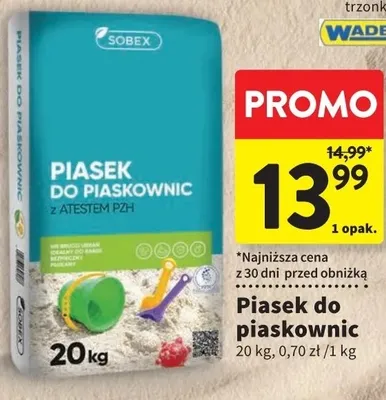 Nie wiesz gdzie kupi膰 produkt Piasek do piaskownicy Sobex w promocji? Aktualnie produkt Piasek do piaskownicy Sobex znajduje si臋 w atrakcyjnej cenie w sklepach Intermarche. Opr贸cz tego produkt mo偶na kupi膰 w innych sklepach, jednak aktulanie nie posiadamy informacji o promocjach w nich.