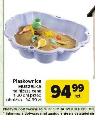 Zastanawiasz si臋, gdzie kupi膰 i ile kosztuje produkt Piaskownica muszelka? Regularnie sprawdzamy, czy jest promocja na ten produkt w Biedronka, Lidl, Kaufland, Auchan, Netto, Makro i innych sklepach. Aktualnie posiadamy 1 ofert臋 promocyjn膮 na ten produkt. Ceny zaczynaj膮 si臋 od 24,95z艂!