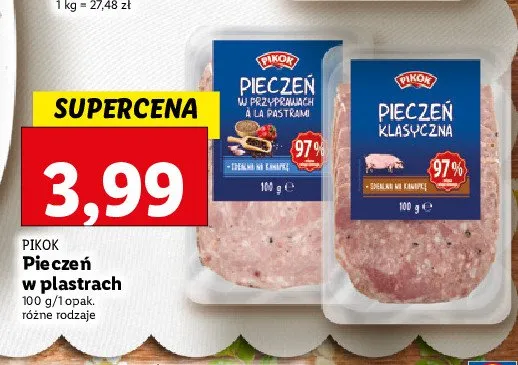 Cena produktu r贸偶ni si臋 w zale偶no艣ci od wybranego sklepu. Niestety nie posiadamy danych o aktualnych promocjach, jednak w艣r贸d archiwalnych ofert Piecze艅 a'la pastrami Pikok kosztuje od 3,99 z艂.