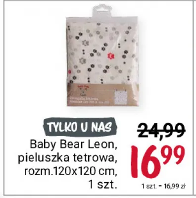 Cena produktu r贸偶ni si臋 w zale偶no艣ci od wybranego sklepu. Niestety nie posiadamy danych o aktualnych promocjach, jednak w艣r贸d archiwalnych ofert Pielucha tetrowa leon rozm. 120 x 120 cm Baby bear leon kosztuje od 16,99 z艂.